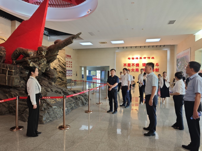 在主题广场,全体党员面向鲜红的党旗,重温入党誓词,用铿锵誓言铭记初心使命。在英烈碑廊前向长眠在这里的革命烈士敬献鲜花,表达了对革命先烈的崇敬之情和为党的事业奋斗终身的决心。